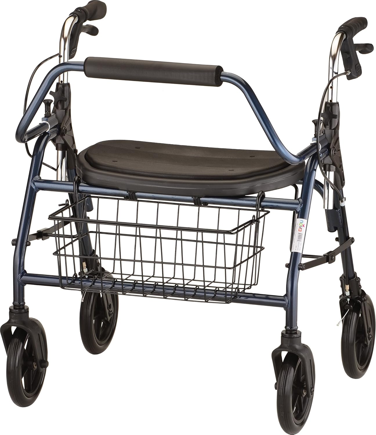 The Mack Series is strong and reliable with a 400 pound weight capacity. Features include 8” wheels,an extra wide seat with a built-in seat pad,locking hand brakes, a front wire basket, and a removable back